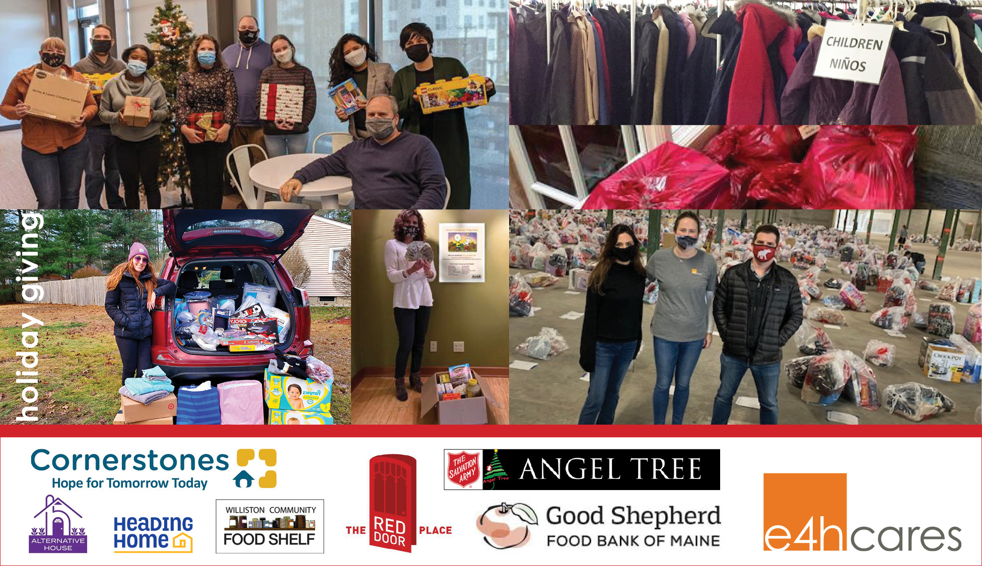 E4Hcares has been exceptionally busy during this winter season to provide assistance to those in need throughout the community. Each office has given their time, energy, donations, and optimism for joyous holidays.
