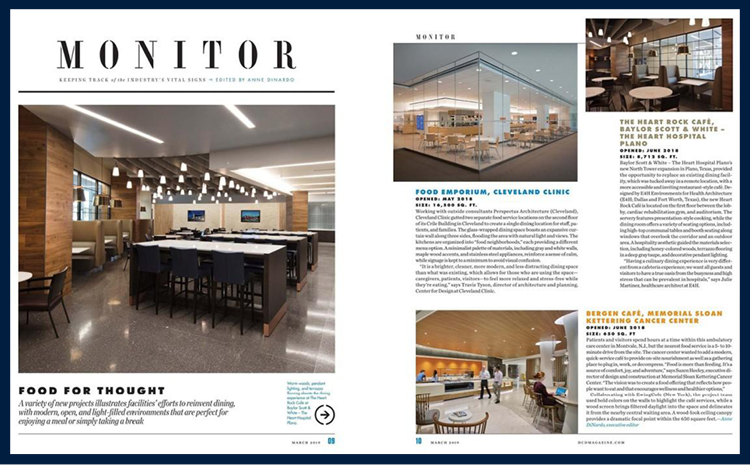 In this month’s HCD Magazine, E4H is reinventing the hospital dining experience at Heart Rock Café located in the Baylor Scott & White Health – The Heart Hospital Plano.
