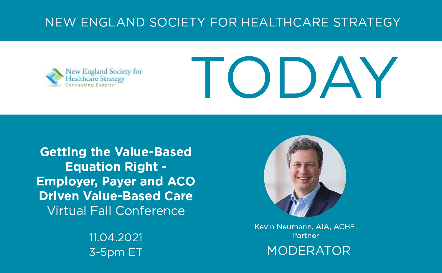Partner Kevin Neumann, AIA, ACHE, will be moderating a panel discussion at the Annual Meeting of the New England Society for Healthcare Strategy today at 3-5pm. The virtual fall conference topic is Getting the Value-Based Equation Right – Employer, Payer and ACO Driven Value-Based Care. For more information.