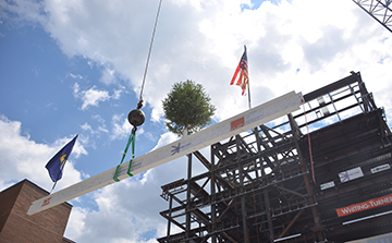 A Topping Out ceremony was held for the University of Vermont Medical Center’s Miller Building, continuing a long tradition of ceremonially placing the last steel beam of construction. A diverse group of people involved in the project; patients, care givers, administration, planners, architects, and construction managers, came together to honor the skilled craftsmen and women working on the $190M inpatient bed building. News Coverage