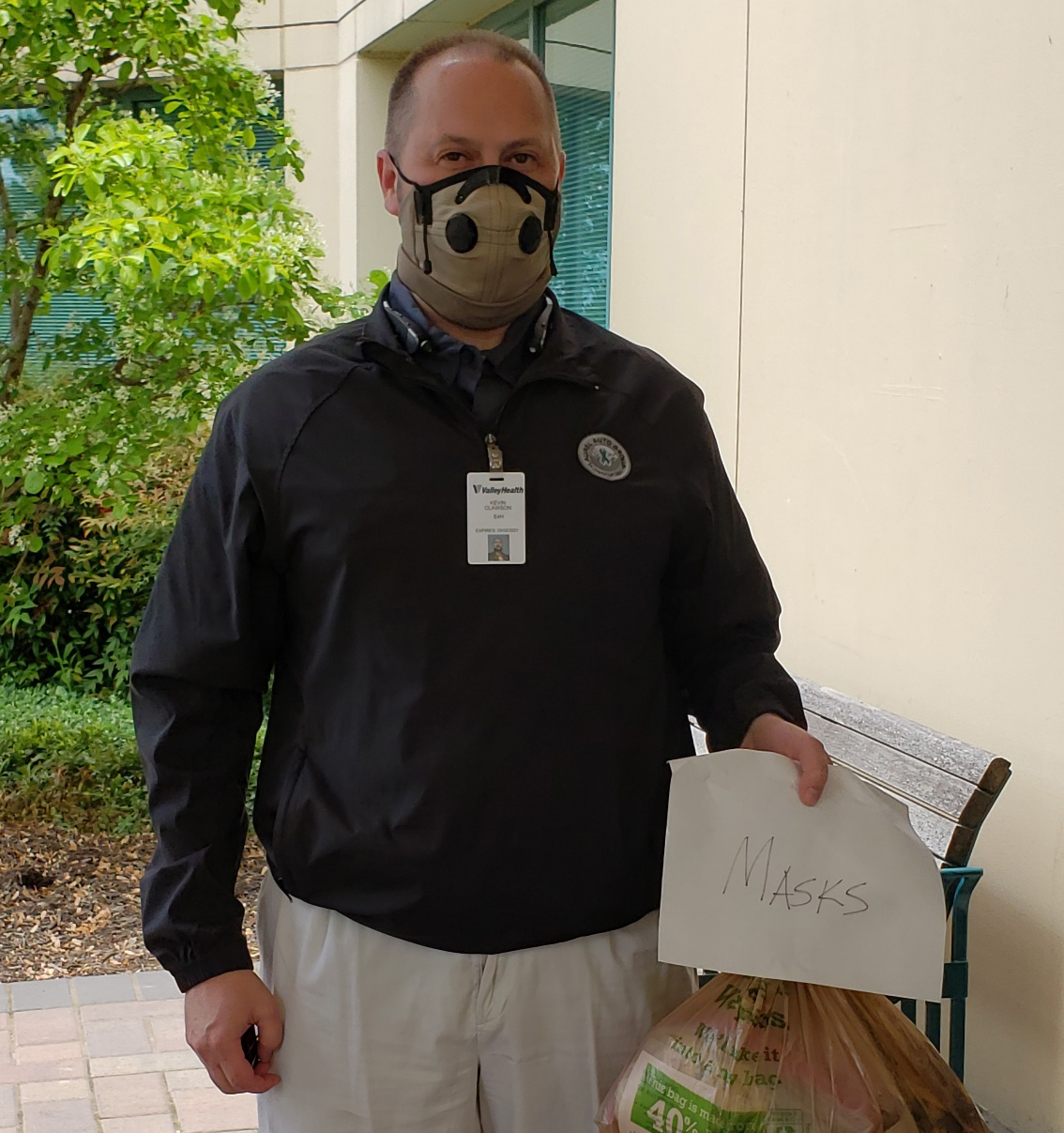 The E4H DC office created 100 handmade face masks as part of E4Hcares. E4H’s Kevin Clawson is shown delivering the cloth masks to Valley Health in the Virginia Shenandoah Valley.