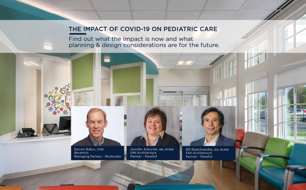 Recentric Managing Partner Darren Nakos hosts E4H’s Bill Repichowskyj, AIA, NCARB, Partner, and Jennifer Arbuckle, AIA, NCARB, Leed AP, Partner, in an interview on Thursday, August 13th. Learn how COVID-19 is affecting pediatric care in the United States and the special considerations being made to design, planning, and technologies. View the webinar.